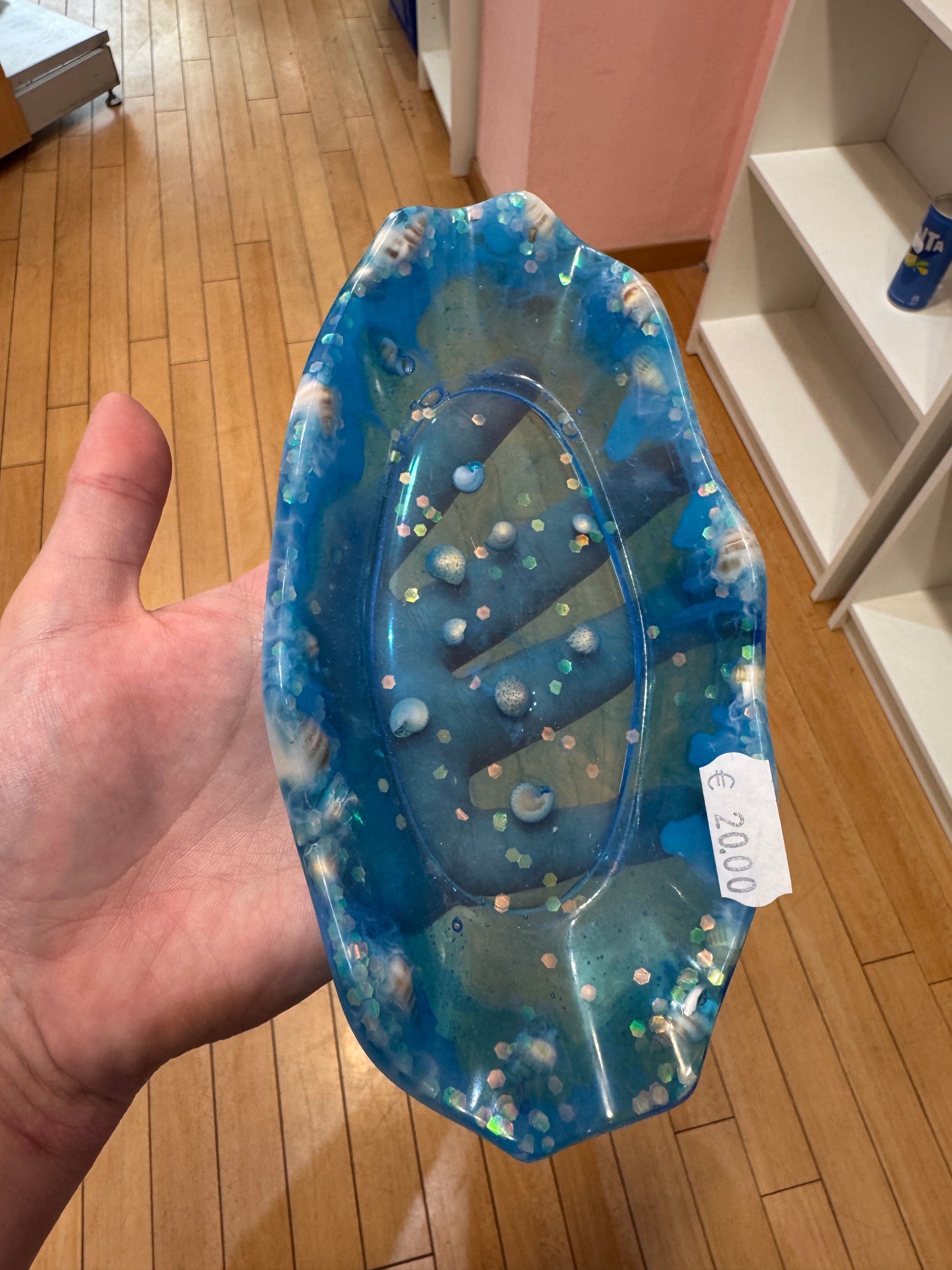 Blaue Schale mit Muscheln aus Epoxidharz